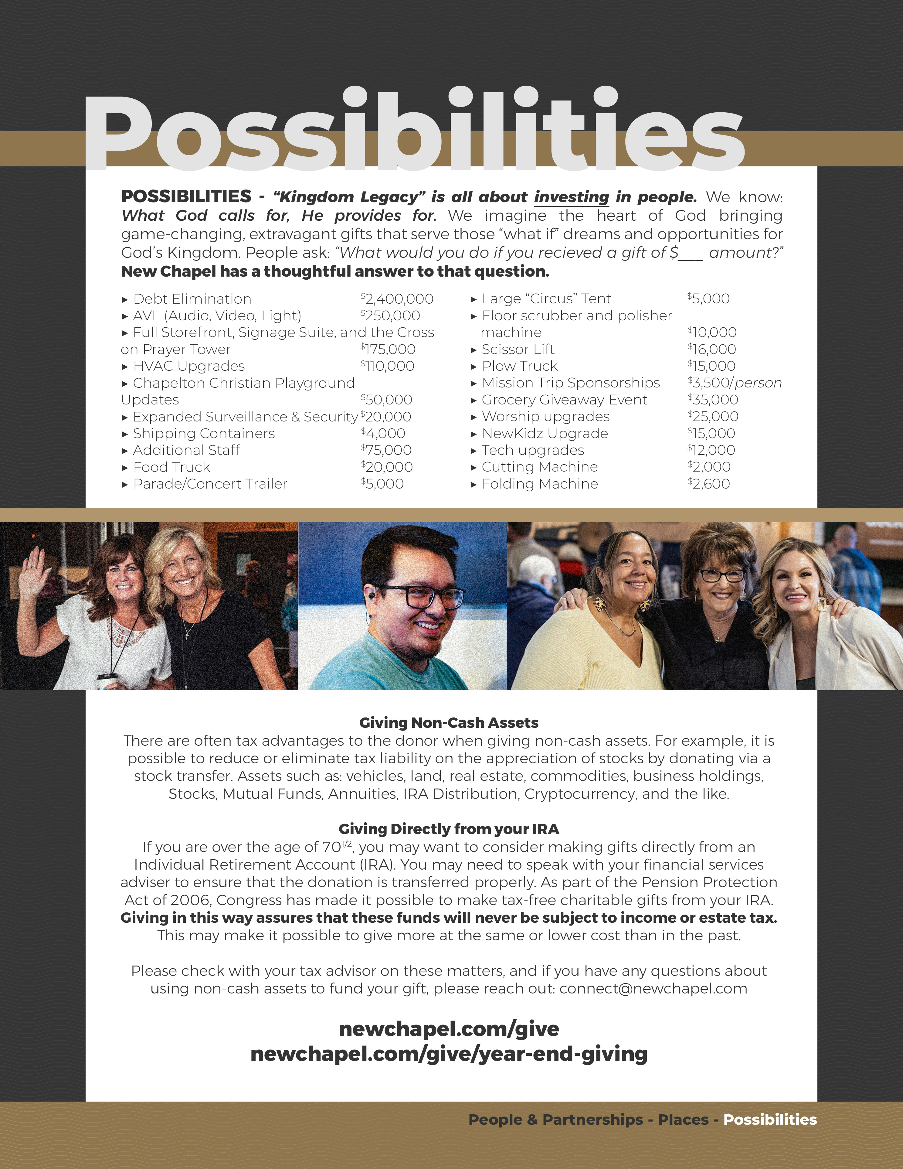 "Kingdom Legacy" is a strategic generosity initiative for those who are serious about investing in lasting influence through the ministry at New Chapel.